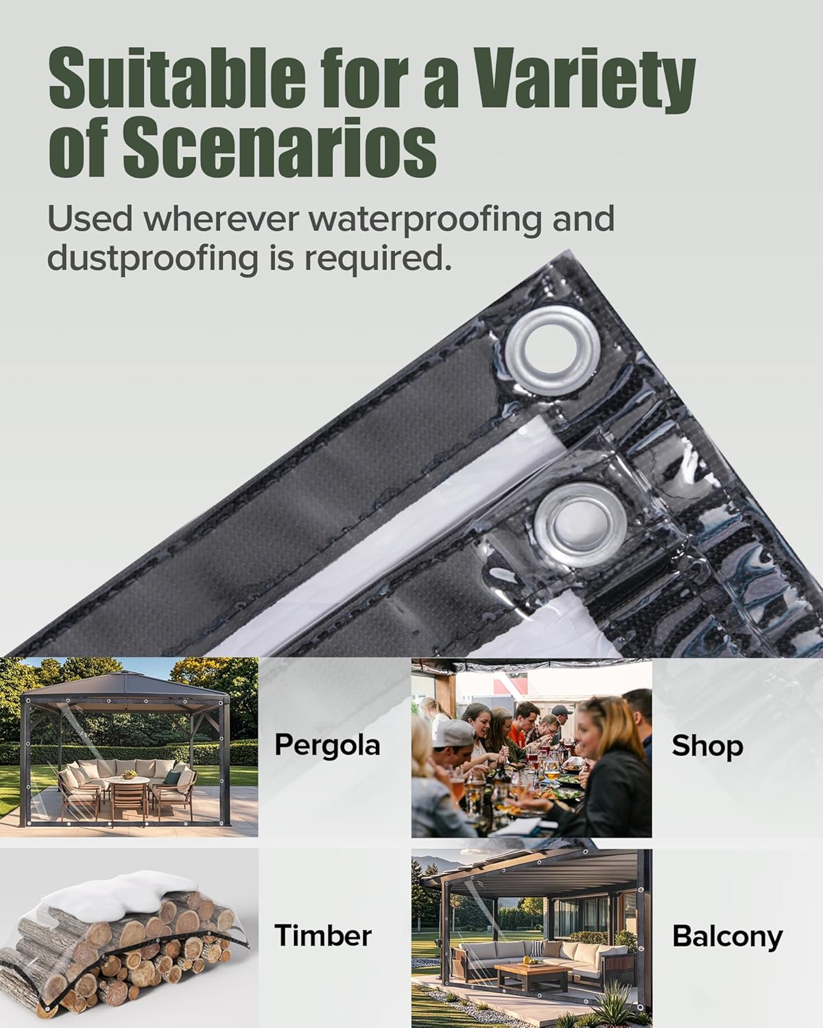 【Multi-Purpose Protection】Ideal as a greenhouse cover, outdoor curtain, patio or gazebo enclosure, as well as for protecting cars, boats, furniture, firewood, and more—suitable for both home and professional use.